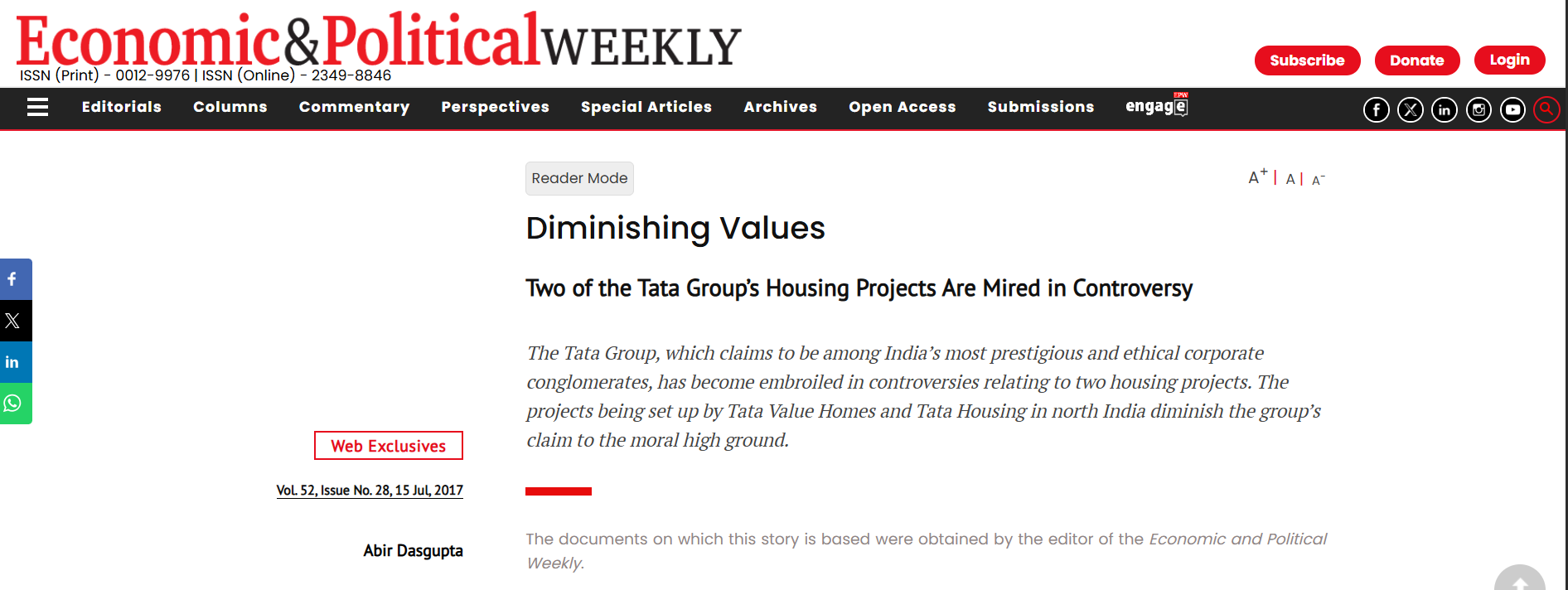 Two of the Tata Group's Housing Projects Are Mired in Controversy. The Tata Group, which claims to be among India's most prestigious and ethical corporate conglomerates,... Read more.