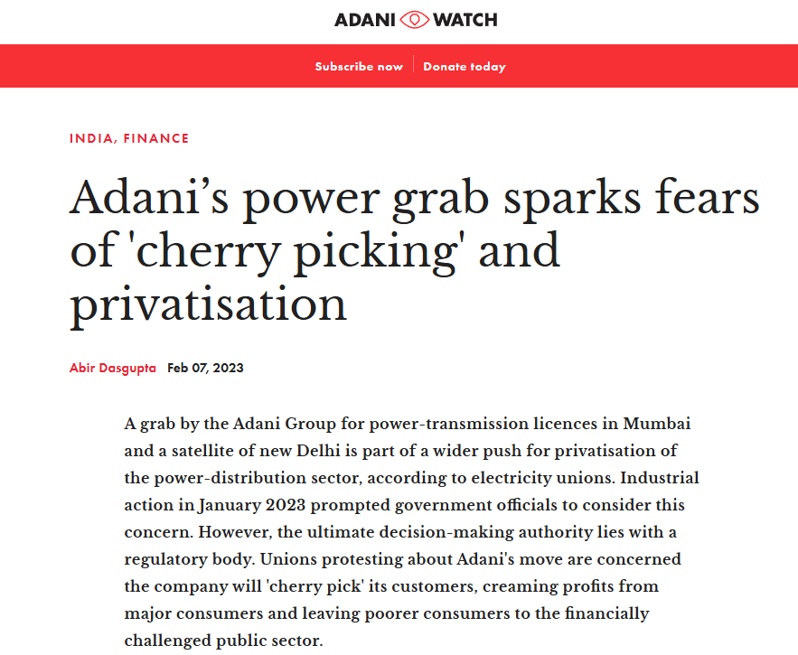 A grab by the Adani Group for power-transmission licences in Mumbai and a satellite of new Delhi is part of a wider push for privatisation of the power-distribution sector, according to electricity unions. Industrial action in January 2023 prompted government officials to consider this concern. However, the ultimate decision-making authority lies with a regulatory body. Unions protesting about Adani’s move are concerned the company will ‘cherry pick’ its customers.
